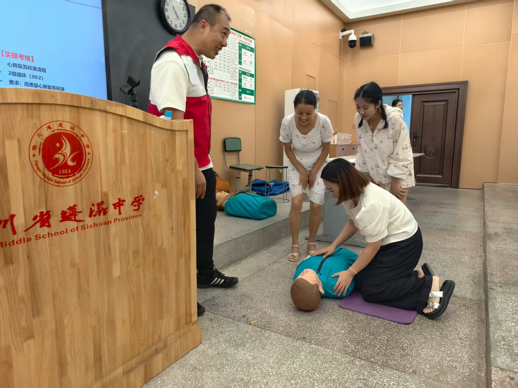 “再过两天学生就要返校了,现在学会这些急救技能,开学迎新、日常看护都更有底气了!”8月27日开始,蓬溪县红十字会的“应急救护课堂”忙着为县域学校教职工 “充电”,用时3天,从幼儿园到小学、中学,再到特殊教育学校,33所学校近800名教职工全员参与培训,用实用技能为新学期校园安全筑牢“第一道防线”。