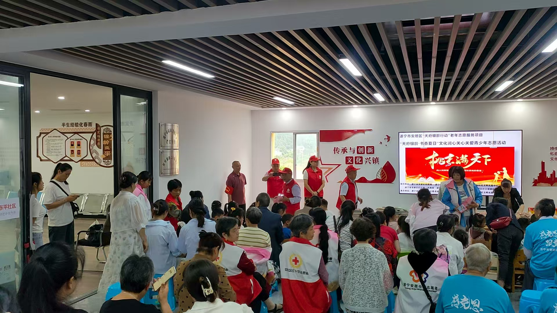 2025年9月6日,安居区红十字会组织红十字志愿者,协助拦江镇东平社区开展“天府银龄·书香夏日”文化润心关心关爱青少年志愿活动。此次活动汇聚了退休教师、留守儿童、家长以及红十字会志愿者、红叶志愿者等多方人员。