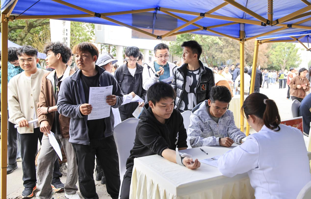 造血干细胞捐献宣传点,同学们在红十字会工作人员的引导下,认真填写《志愿捐献者同意书》,并完成8—10ml检测血样捐献。