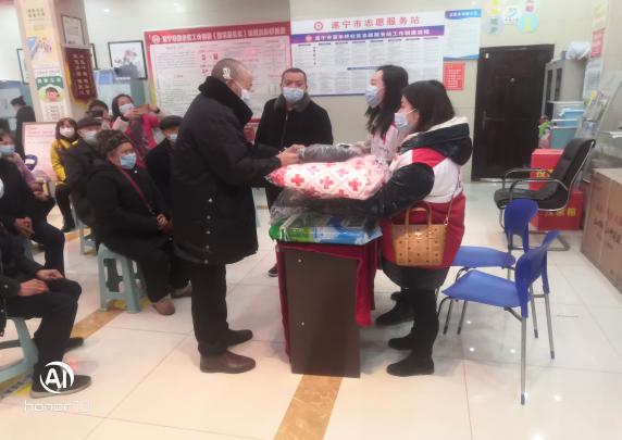 活动现场,遂宁市红十字会副秘书长张盼琨代表红十字会,为外出务工因疫情未能返乡人员的家属、贫困党员及贫困户送去党委政府的关心关爱和节日的问候。此次活动,遂宁市红十字会募集省红会标准型家庭包30个(每个含棉被1床、毛毯1床、棉衣1件、大米10公斤、糖1袋,价值297.5元/个,共计价值8925元),共为30个家庭送去温暖,其中贫困党员3个、低保户及春节留守户27户,受益群众达65人。