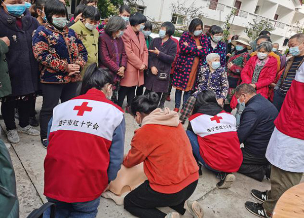 活动现场,市红十字会应急救护培训师资为敬老院工作人员提供急救培训,工作人员纷纷认真听讲,跟着医生的指导做练习。宣传台有序地向群众发放政策宣传和健康知识宣讲资料,健康知识讲座和现场义诊活动同步进行。“现在政府好啊!给我们普及健康知识,关心我们、关爱我们,还送来很多好东西”,现场一位接受义诊体检的老人乐呵呵的说到。