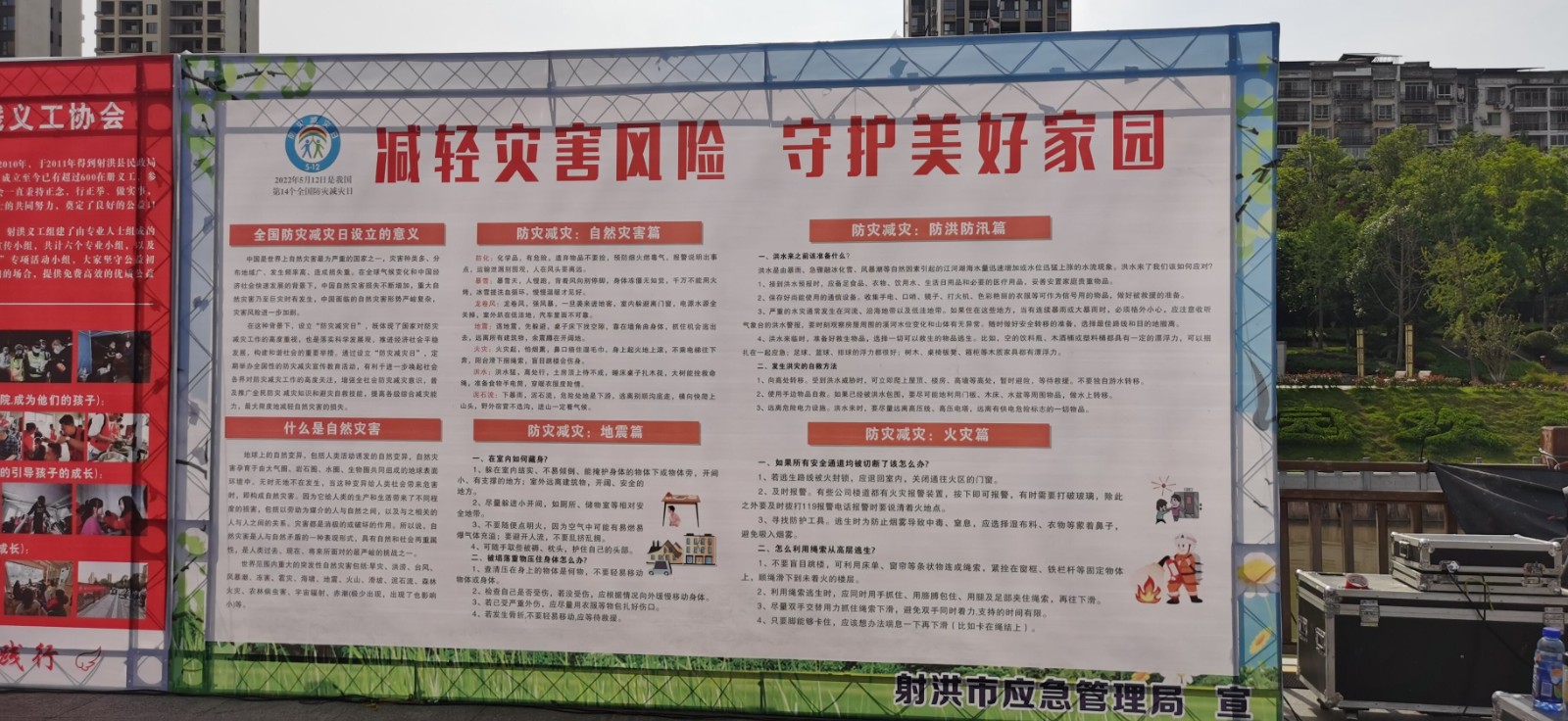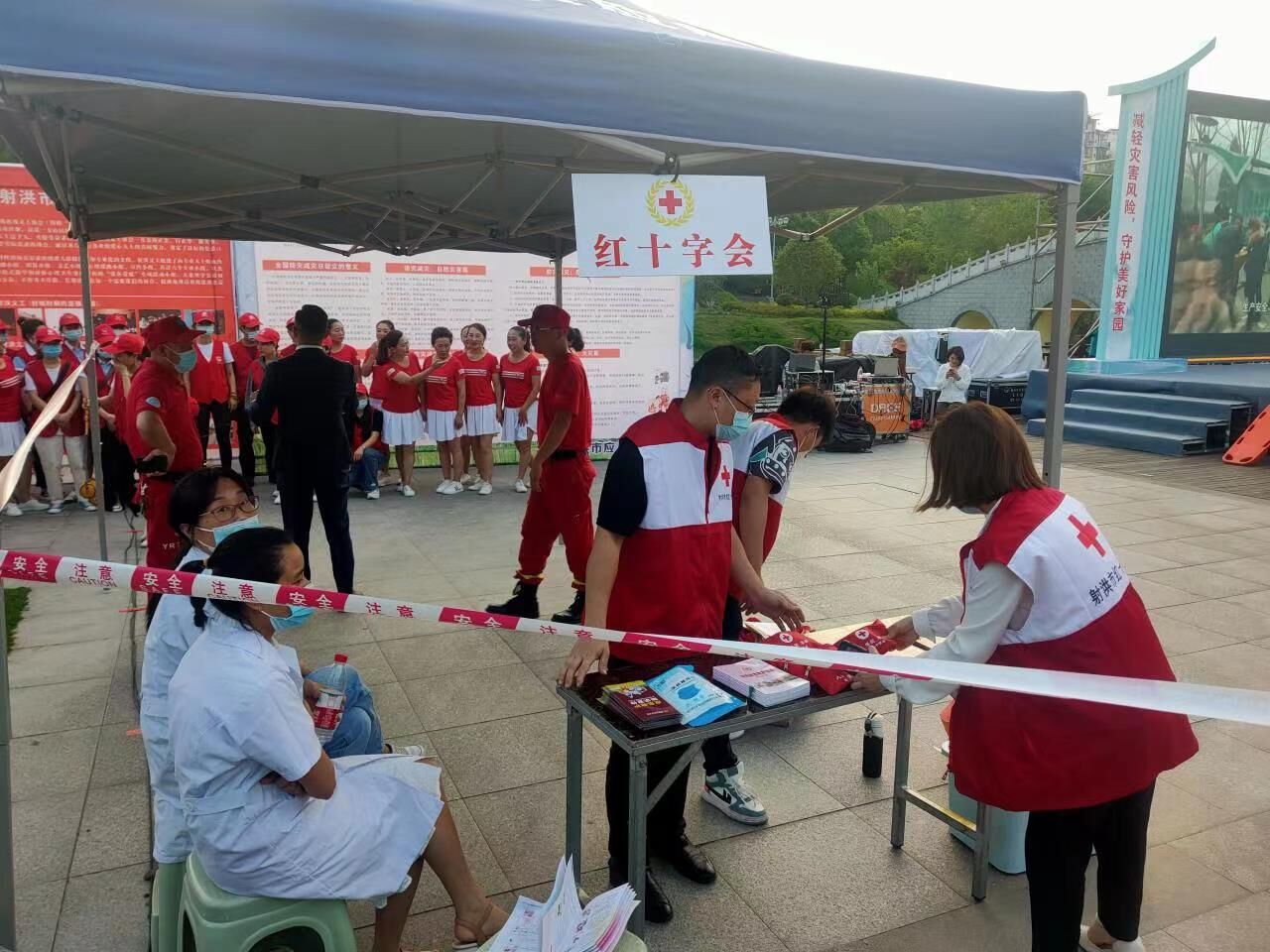 2022年5月12日是我国第14个防灾减灾日,射洪市红十字会联合市应急管理局、市消防救援大队,结合“红十字博爱周”活动,依托救援队伍和义工协会,在紫云文化公园开展了“世界红十字博爱周”暨“5.12”全国防灾减灾日宣传活动,活动以“减轻灾害风险 守护美好家园”为主题。