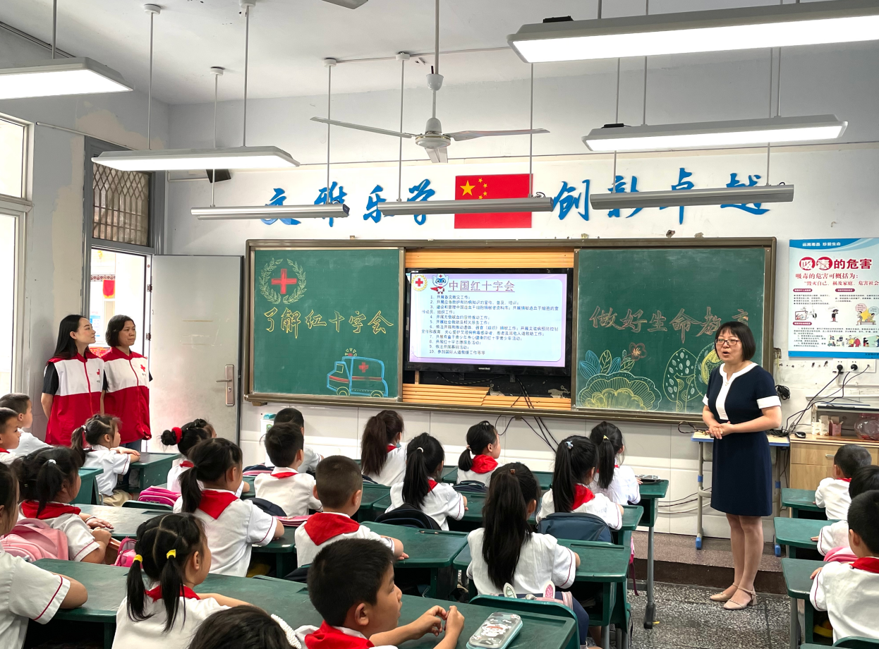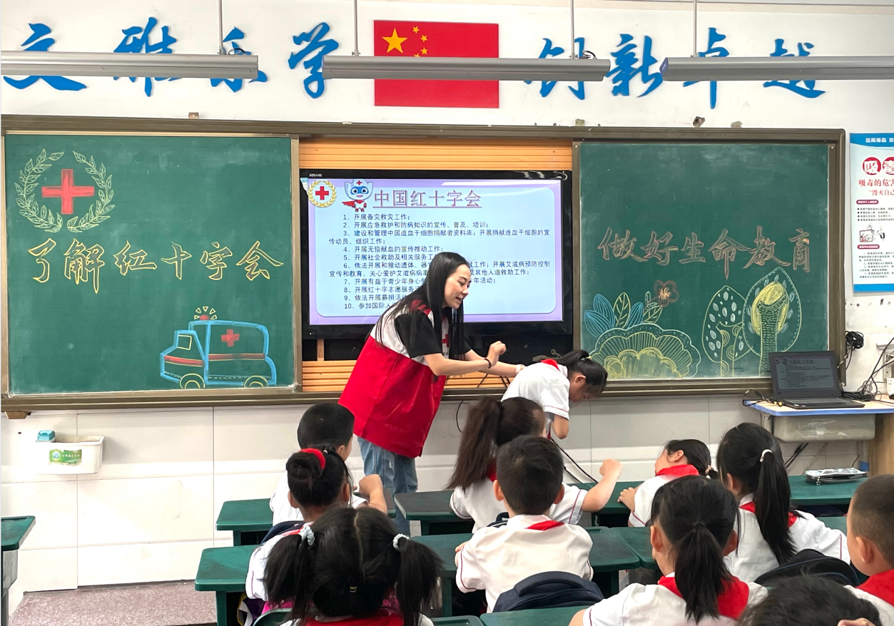 晨会结束后同学们纷纷回到教室,各班老师统一开展“了解红十字会 做好生命教育”主题班会,倡导用心呵护生命,用爱传递温暖。