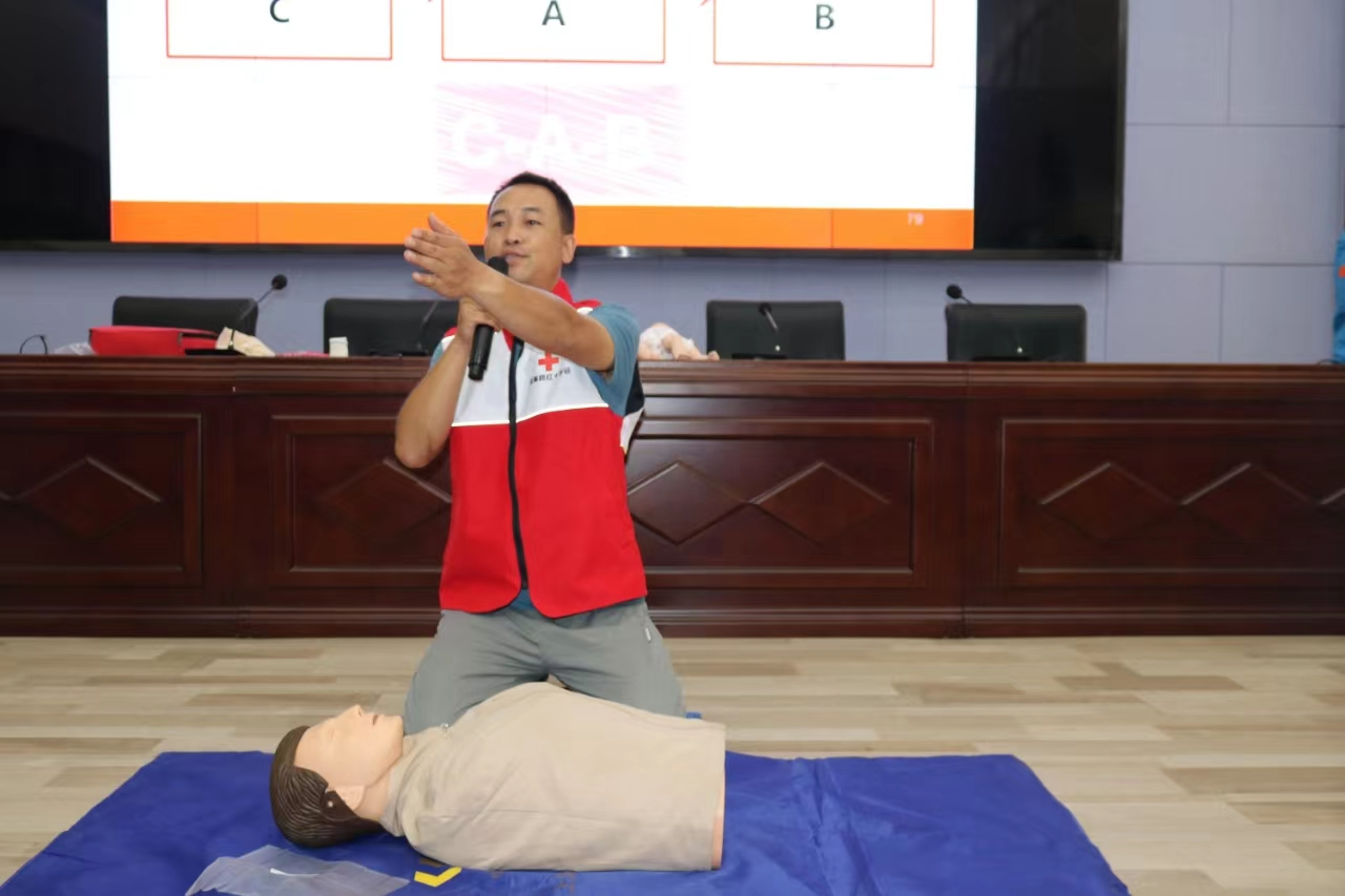 课堂上,培训讲师深入浅出地讲解了红十字运动基本知识、心肺复苏概述,演示了现场心肺复苏的步骤与方法、创伤救护概述、止血包扎、骨折固定、创伤搬运、常见急症、意外伤害和突发事件等丰富的应急救护知识和操作。