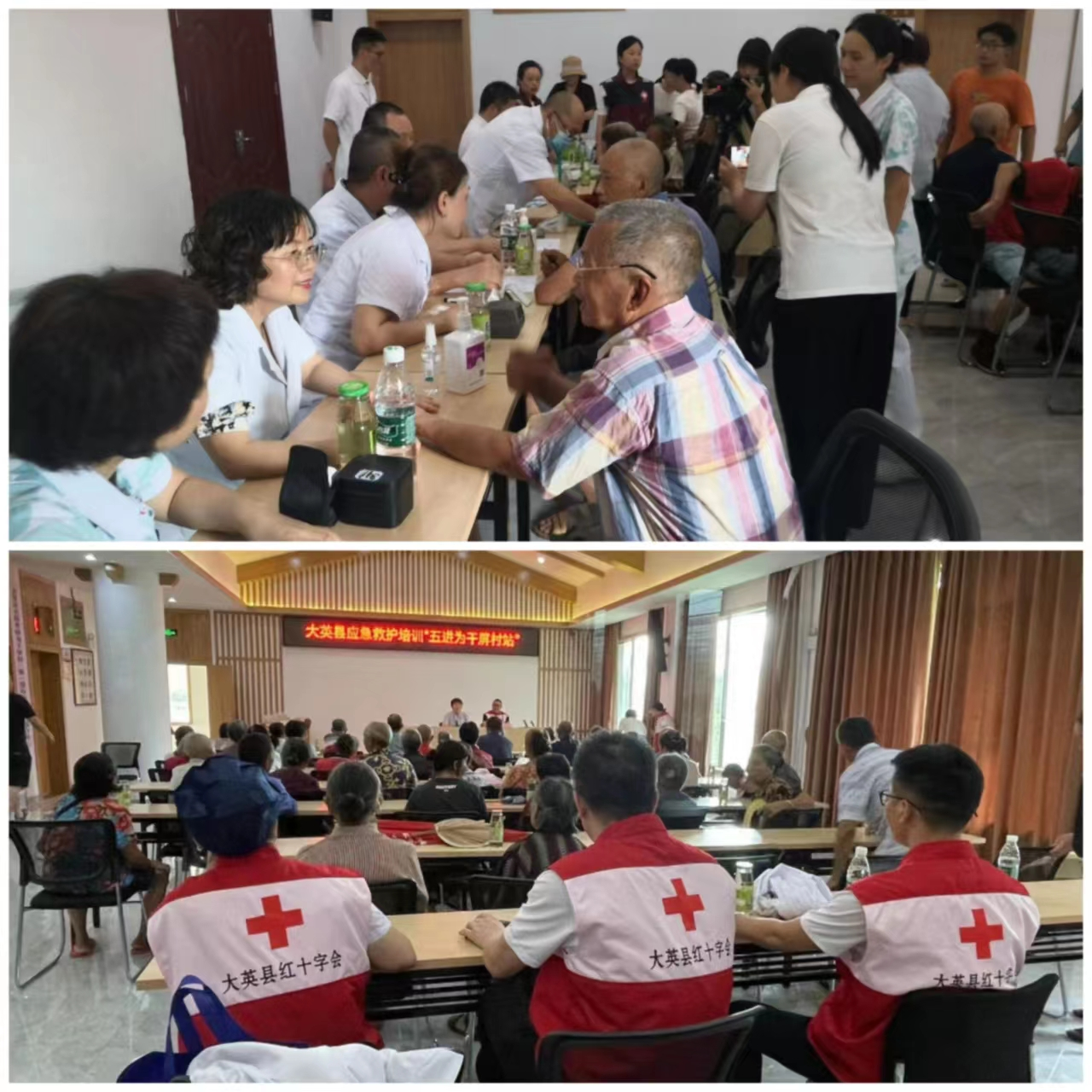 2023年8月19日是第六个中国医师节,大英县知联会的医师会员们要到基层去义诊,大英县人民医院的医务人员要到村里去开展万名医务人员志愿活动,大英县疾控中心的公卫医生要去给村民举行健康讲座,发放健康科普资料,大英县红十字会的救护培训师要去给村民普及应急救护培训知识。他们的活动目的地都是卓筒井镇为干屏村。在村委会的大力支持下,70多位村民早早来到活动现场,翘首企盼,各项活动次第进行,村民们享受一次丰富的健康大餐。