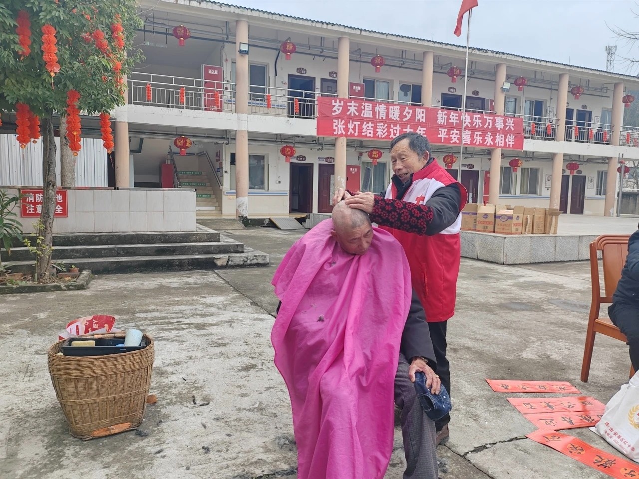 活动现场温馨有序,洋溢着浓浓的温情。医疗志愿者认真为老人开展血压测量、健康咨询等义诊服务,耐心讲解冬季常见病防治知识。义剪志愿者技艺熟练、服务周到,细致地为每一位有理发需求的老人修剪头发,让面貌焕然一新。书法志愿者挥毫泼墨,现场书写并赠送春联和“福”字,一幅幅寓意吉祥的春联映衬出喜庆祥和的节日氛围,也传递着对老人们的美好祝愿。