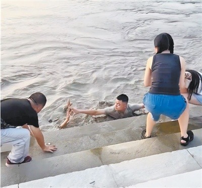 央媒看四川丨遂宁小伙赵成龙在众人帮助下救起落水男孩